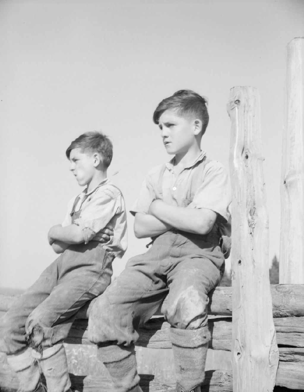 Deux jeunes paysans sur la ferme d'Hermas Jalbert à Saint-Elzéar, comté de Beauce