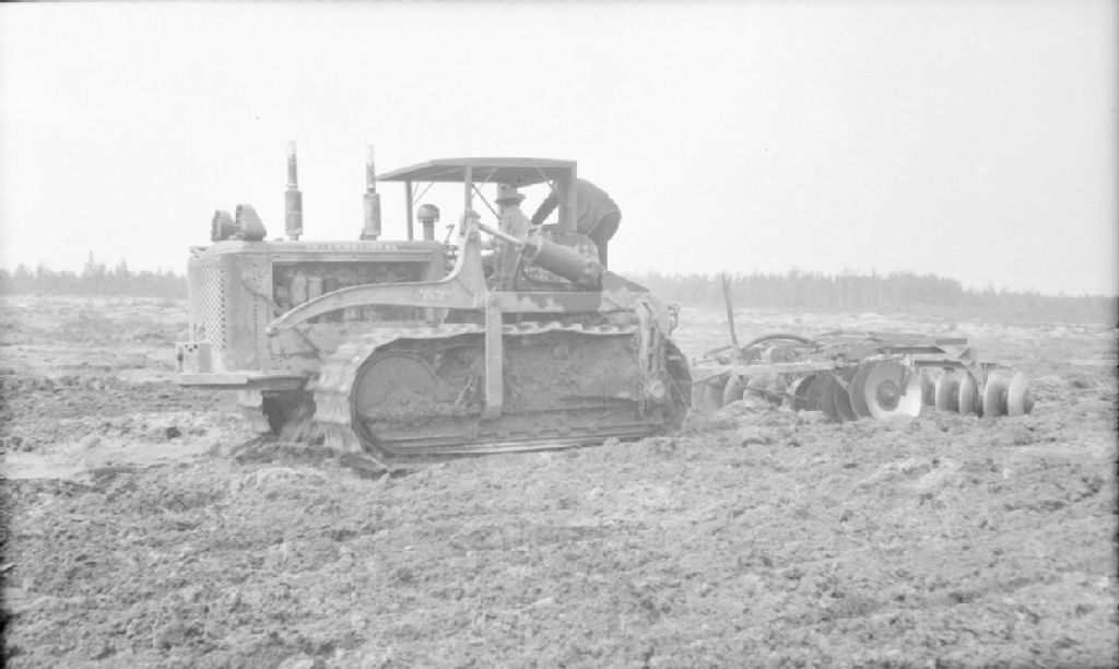 Un bulldozer dans un champ, 1948, Archives nationales à Québec, Fonds Ministère de la Culture et des Communications, (03Q,E6,S7,SS1,D2,P63652), Jean Parrot.