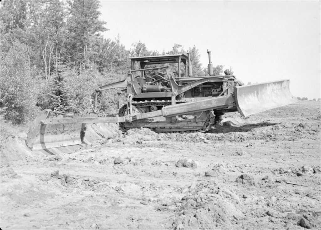 Un bulldozer, 1948, Archives nationales à Québec, Fonds Ministère de la Culture et des Communications, (03Q,E6,S7,SS1,D2,P63874), Pierre -Émile Roy.