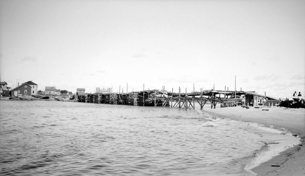 Pont sur la petite Natashquan, 1948, Archives nationales à Québec, Fonds Ministère de la Culture et des Communications, (03Q,E6,S7,SS1,D2,P63947), J. Cournoyer.