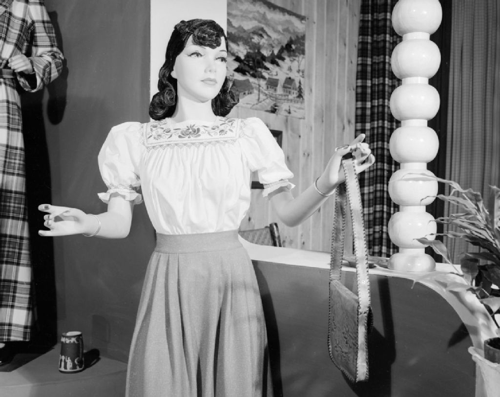 Exposition d'Arts Domestiques au Café du Parlement à Québec: mannequin dans la section de la couture