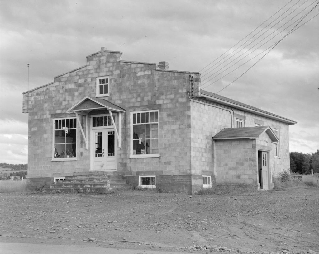 La coopérative et la salle paroissiale de Saint-Patrice-de-Beaurivage, 1948, Archives nationales à Québec, Fonds Ministère de la Culture et des Communications, (03Q,E6,S7,SS1,D2,P64097), Omer Beaudoin.