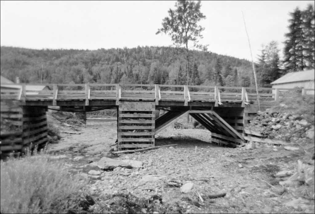 Pont Dawson ou Clark à Restigouche, 1948, Archives nationales à Québec, Fonds Ministère de la Culture et des Communications, (03Q,E6,S7,SS1,D2,P64227), M. Gagnon.