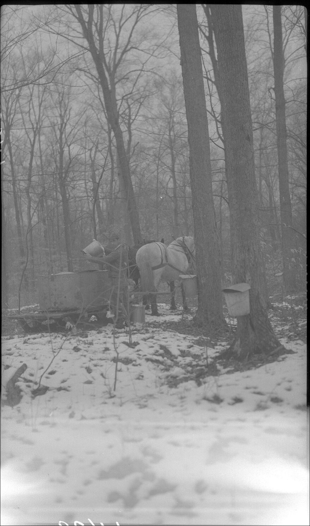 Réservoir sur traîneau pour recueillir l'eau d'érable, 1942, Archives nationales à Québec, Fonds Ministère de la Culture et des Communications, (03Q,E6,S7,SS1,D2,P6429), Roch Delisle.