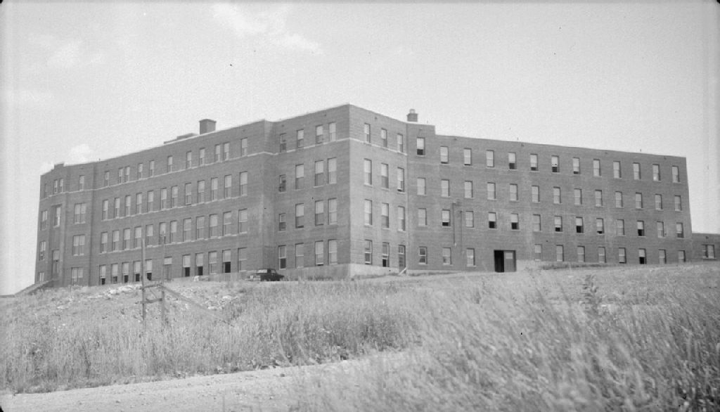 Un bâtiment, 1948, Archives nationales à Québec, Fonds Ministère de la Culture et des Communications, (03Q,E6,S7,SS1,D2,P64309), Roland Fournier.