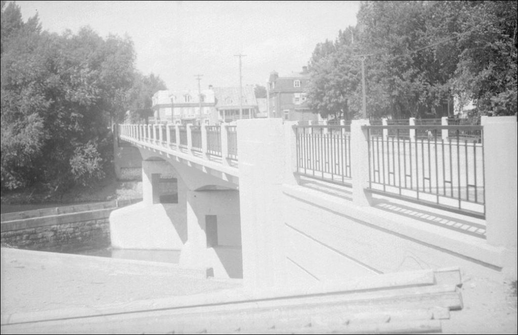 Pont sur la route 41 traversant la rivière l'Achigan dans le village de Saint-Lin, comté de L'Assomption, 1948, Archives nationales à Québec, Fonds Ministère de la Culture et des Communications, (03Q,E6,S7,SS1,D2,P64361), Camille Milot.