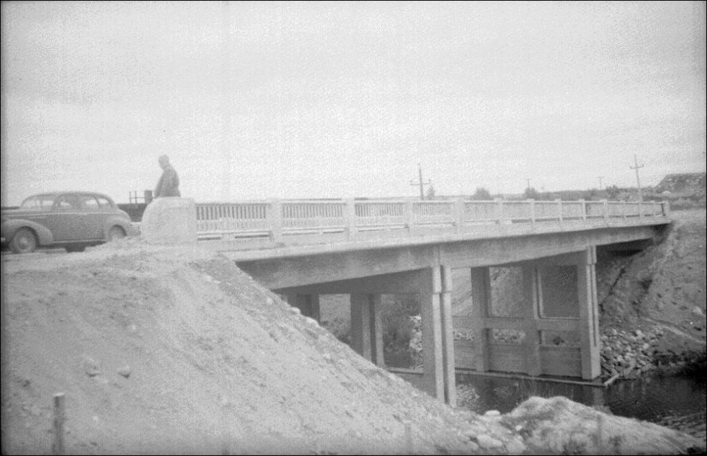 Pont sur la rivière Bellefeuille au canton Authier, 1948, Archives nationales à Québec, Fonds Ministère de la Culture et des Communications, (03Q,E6,S7,SS1,D2,P64381), Camille Milot.