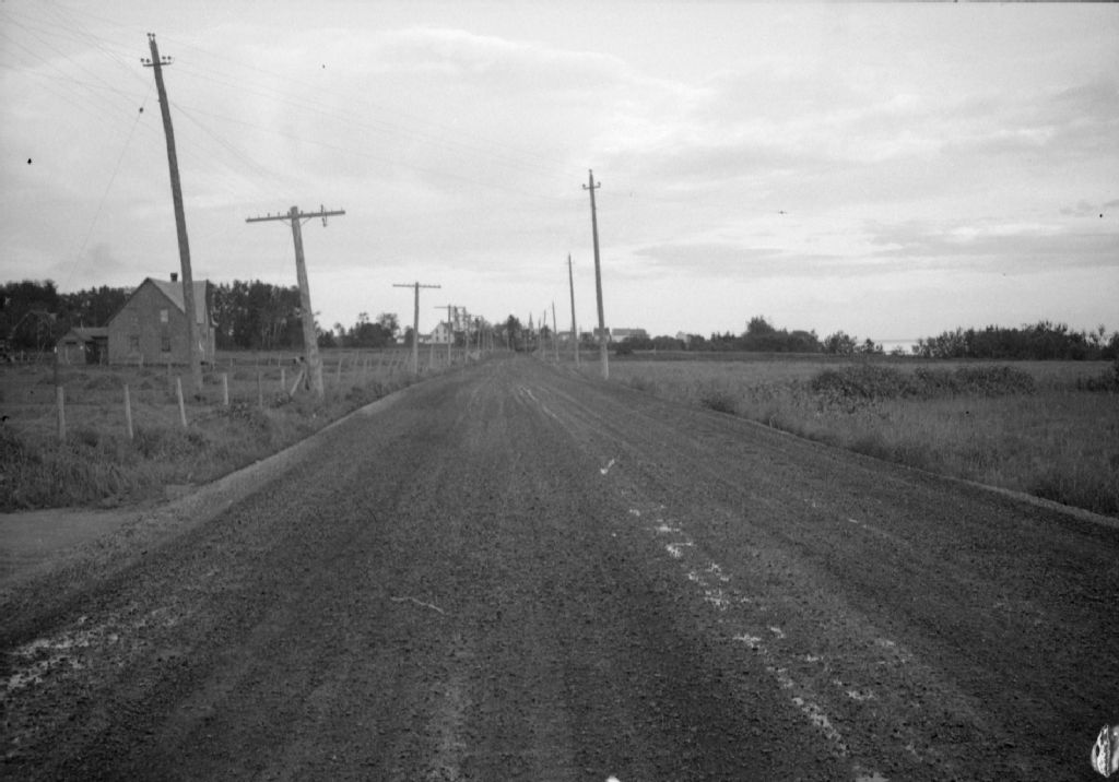 Préparation au béton sur la route 6 à Saint-Siméon, 1948, Archives nationales à Québec, Fonds Ministère de la Culture et des Communications, (03Q,E6,S7,SS1,D2,P64519), Maurice Gravel.