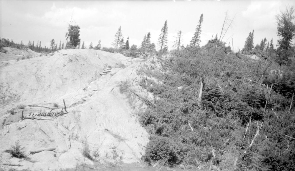 Érosion d'une pente déboisée dans une terre argileuse près de la rivière Colombier à Sainte-Thérèse-du-Colombier