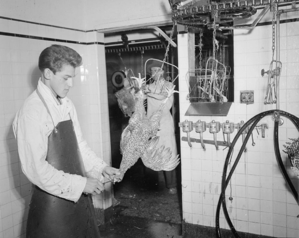 Les abattoirs de la Coopérative fédérée de Québec-Ouest, 1948, Archives nationales à Québec, Fonds Ministère de la Culture et des Communications, (03Q,E6,S7,SS1,D2,P64693), Neuville Bazin.