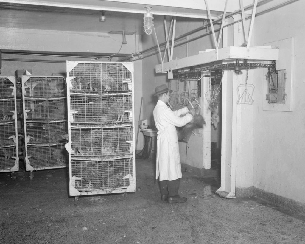 Les abattoirs de la Coopérative fédérée de Québec-Ouest, 1948, Archives nationales à Québec, Fonds Ministère de la Culture et des Communications, (03Q,E6,S7,SS1,D2,P64694), Neuville Bazin.