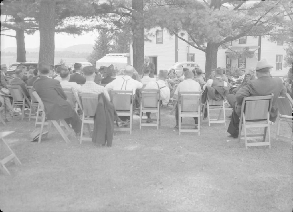 Réunion des membres des concours de fermes à Lennoxville. M. J.A. Sainte-Marie, régisseur de la station expérimentale de Lennoxville, commente les résultats obtenus avec le trèfle Ladino