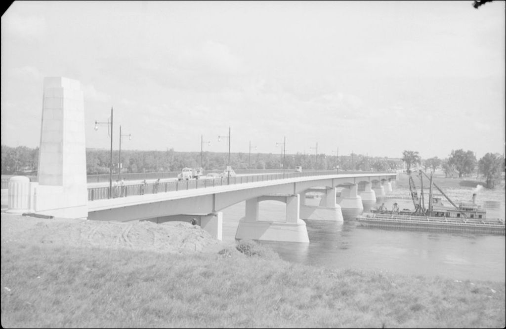 Le pont Duplessis à Trois-Rivières, 1948, Archives nationales à Québec, Fonds Ministère de la Culture et des Communications, (03Q,E6,S7,SS1,D2,P64740), Olivier Desjardins.