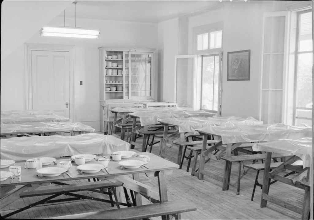 Le réfectoire au Préventorium anti-tuberculeux de Cap-Rouge, 1948, Archives nationales à Québec, Fonds Ministère de la Culture et des Communications, (03Q,E6,S7,SS1,D2,P64749), Paul Carpentier.