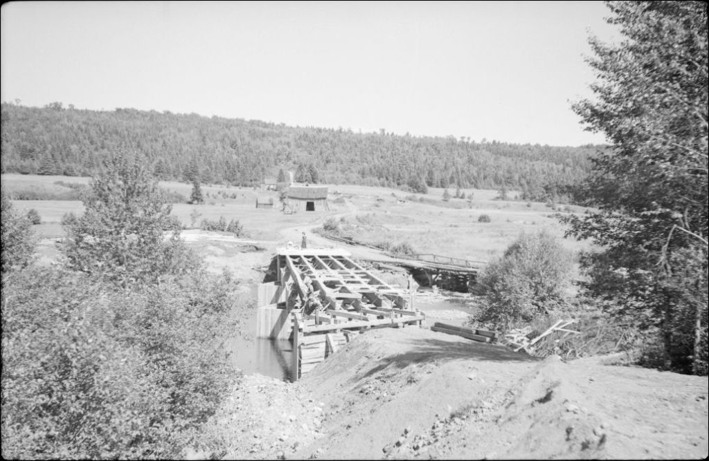 Poutres et pièces de clouage du pont Gray à Saint-Herménégilde, 1948, Archives nationales à Québec, Fonds Ministère de la Culture et des Communications, (03Q,E6,S7,SS1,D2,P64762), Louis-Philippe Poudrier.