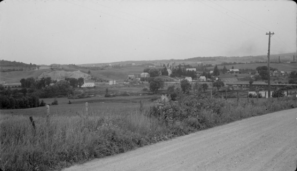 Vue d'Ascot Corner prise de la rive droite de la rivière Saint-François. Comté de Sherbrooke
