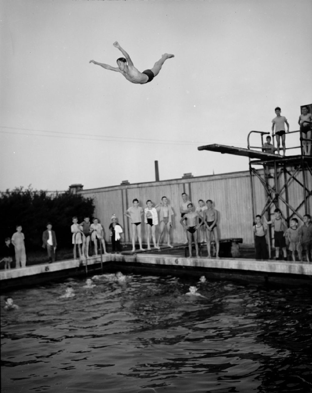 Piscine au parc Victoria à Québec, 1948, Archives nationales à Québec, Fonds Ministère de la Culture et des Communications, (03Q,E6,S7,SS1,D2,P64879), Neuville Bazin.