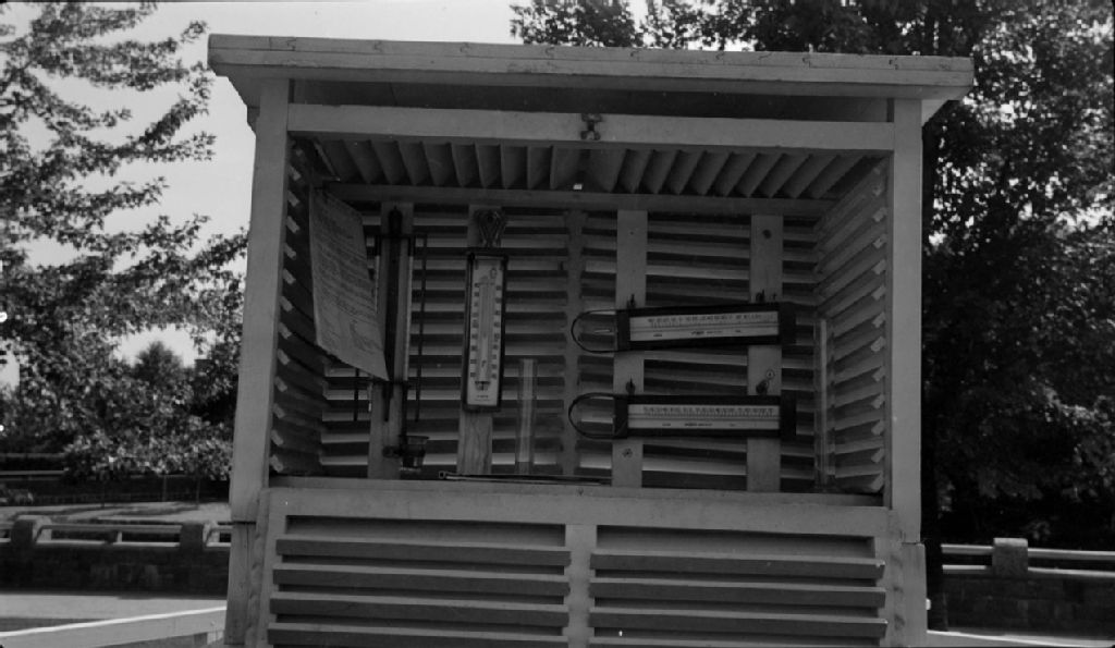 Thermomètre à l'abri au Jardin zoologique de Québec, 1948, Archives nationales à Québec, Fonds Ministère de la Culture et des Communications, (03Q,E6,S7,SS1,D2,P64919), O. Villeneuve.