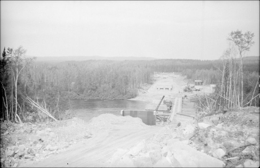 Pont sur la rivière Ashouapmoushouan, canton Denault, comté de Roberval, 1948, Archives nationales à Québec, Fonds Ministère de la Culture et des Communications, (03Q,E6,S7,SS1,D2,P65139), Philippe-Auguste Dupuis.