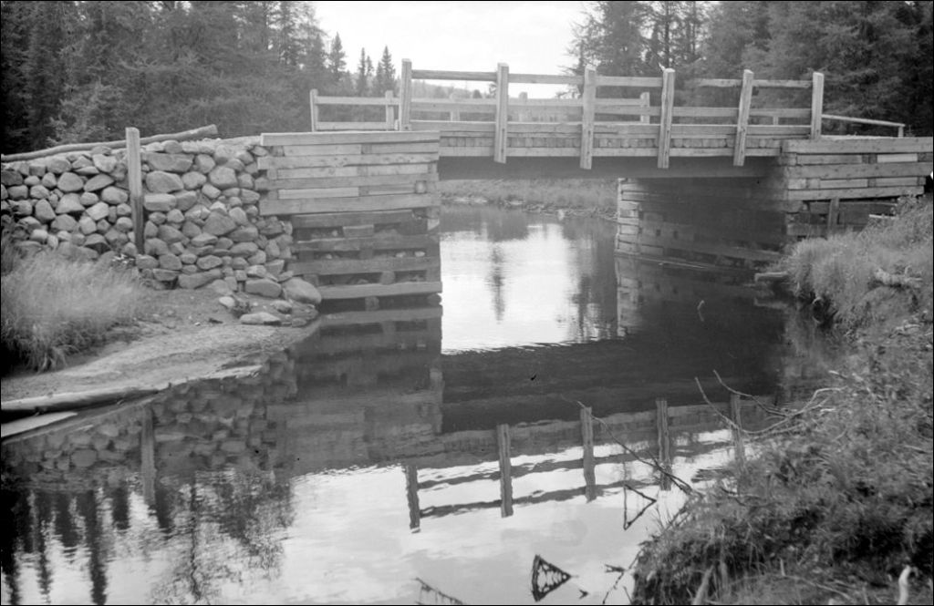 Pont no 1 à 76 milles de Québec sur la route de Saint-Félicien à Québec, 1948, Archives nationales à Québec, Fonds Ministère de la Culture et des Communications, (03Q,E6,S7,SS1,D2,P65339), Philippe-Auguste Dupuis.