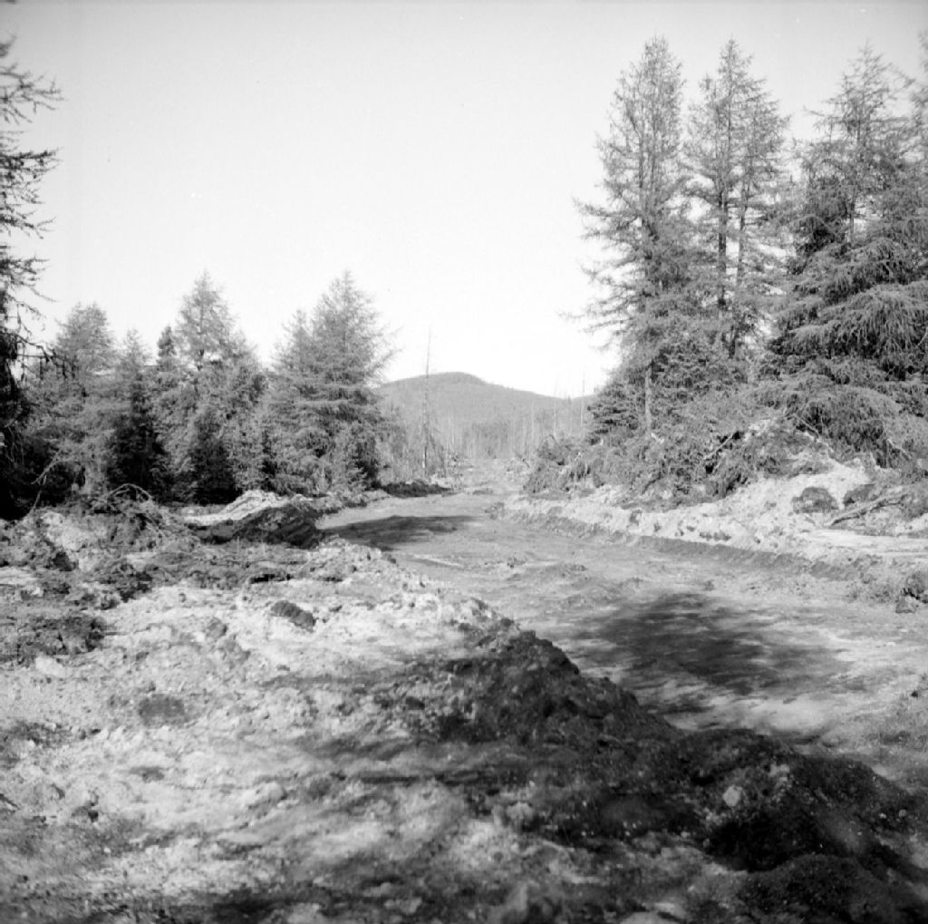 Construction d'un pont sur la rivière Montmorency dans le Parc national des Laurentides, 1948, Archives nationales à Québec, Fonds Ministère de la Culture et des Communications, (03Q,E6,S7,SS1,D2,P65352), Gustave Bédard.
