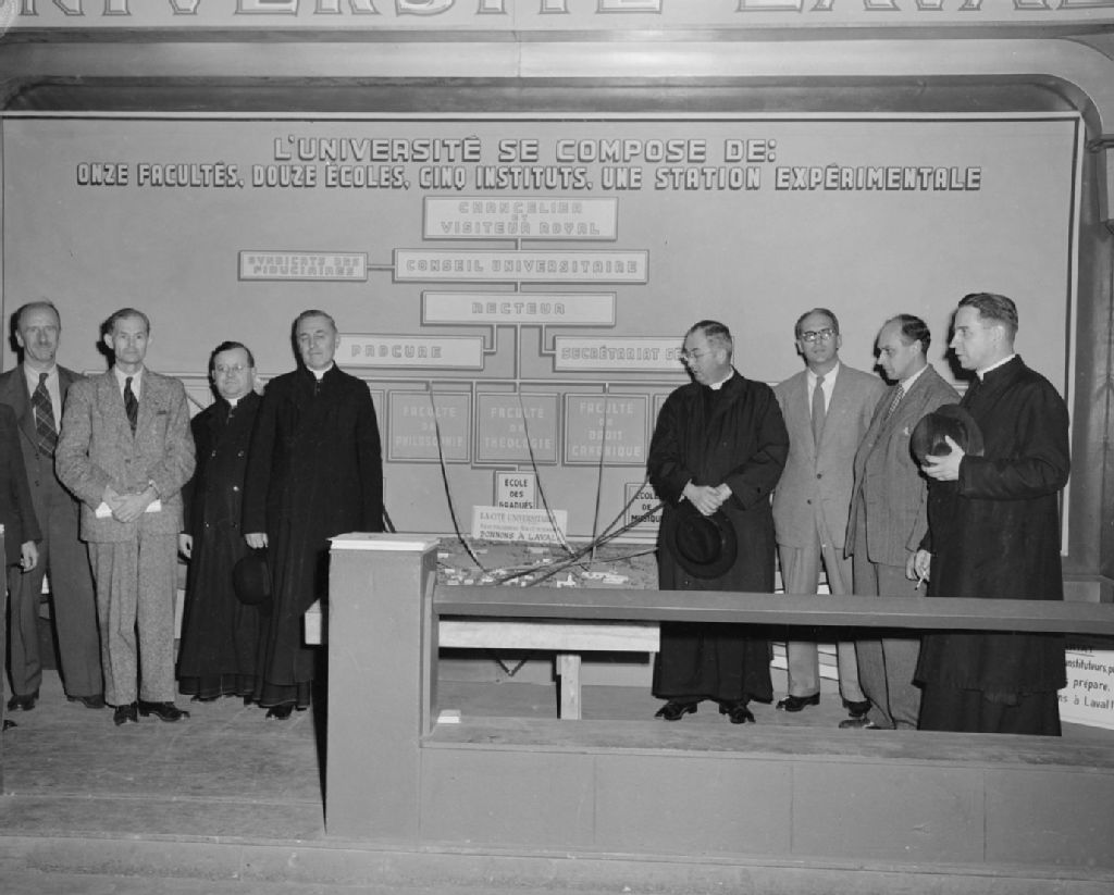 Monseigneur Vandry visite l'exposition de l'agriculture à l'exposition provinciale de Québec, 1948, Archives nationales à Québec, Fonds Ministère de la Culture et des Communications, (03Q,E6,S7,SS1,D2,P65802), Omer Beaudoin.
