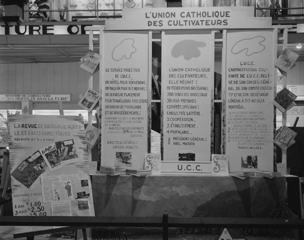 Le kiosque de l'Union catholique des cultivateurs à l'exposition provinciale de Québec, 1948, Archives nationales à Québec, Fonds Ministère de la Culture et des Communications, (03Q,E6,S7,SS1,D2,P65813), Omer Beaudoin.