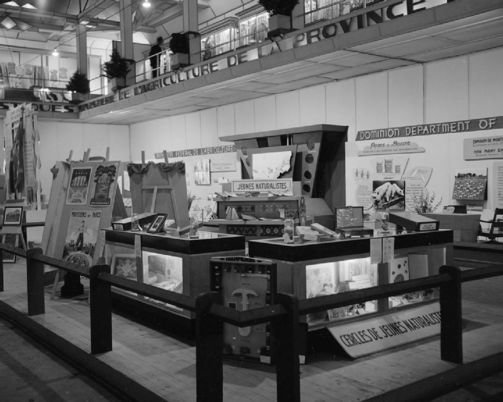 Le kiosque des Cercles des jeunes naturalistes à l'exposition provinciale de Québec, 1948, Archives nationales à Québec, Fonds Ministère de la Culture et des Communications, (03Q,E6,S7,SS1,D2,P65815), Omer Beaudoin.