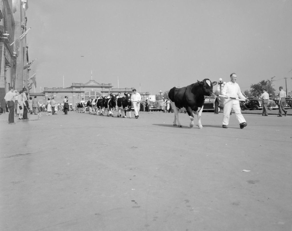 Parade des animaux à l'exposition provinciale de Québec, 1948, Archives nationales à Québec, Fonds Ministère de la Culture et des Communications, (03Q,E6,S7,SS1,D2,P65866), Omer Beaudoin.