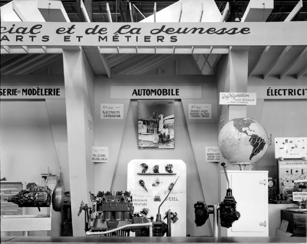 Kiosque sur la formation en mécanique automobile du ministère du Bien-Être Social et de la jeunesse à l'exposition provinciale de Québec