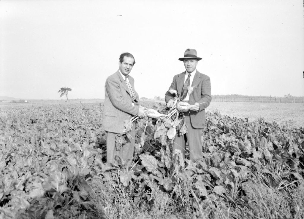 Champ de betteraves à sucre chez M. Léopold Lussier à Marieville, 1948, Archives nationales à Québec, Fonds Ministère de la Culture et des Communications, (03Q,E6,S7,SS1,D2,P66112), Roland Lespérance.