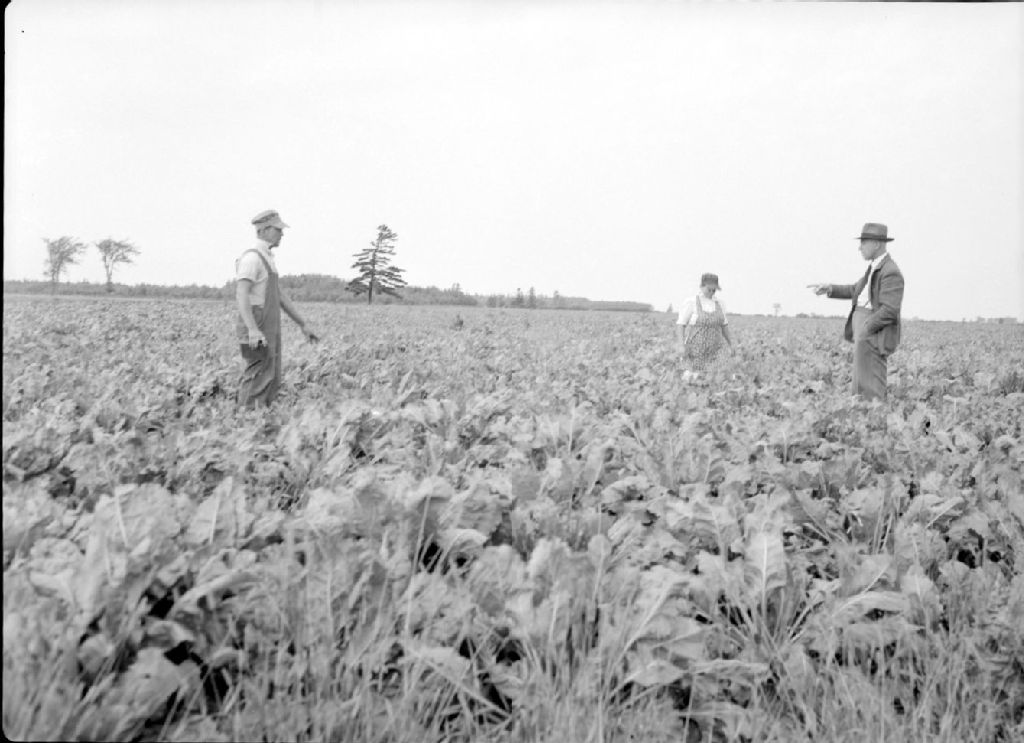 Champ de betteraves à sucre chez Mme Émile Ménard à Saint-Thomas-d'Aquin, 1948, Archives nationales à Québec, Fonds Ministère de la Culture et des Communications, (03Q,E6,S7,SS1,D2,P66114), Roland Lespérance.