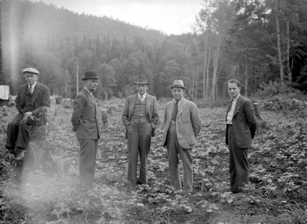 Groupe de fondateurs de la colonie de Grande-Vallée, 1948, Archives nationales à Québec, Fonds Ministère de la Culture et des Communications, (03Q,E6,S7,SS1,D2,P66343), Théodore Mercier.