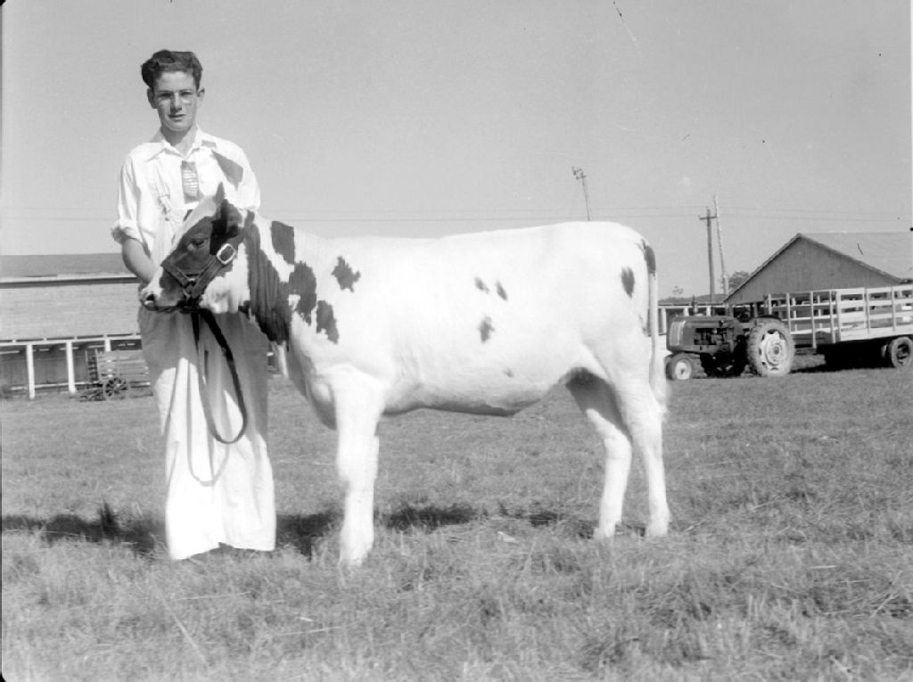 M. G. Parizeau et sa génisse championne à l'Exposition de Victoriaville