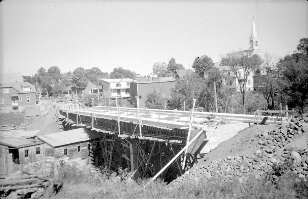 Pont du Moulin Lévesque sur la rivière Saint-Esprit à Sainte-Julienne, comté de Montcalm, 1948, Archives nationales à Québec, Fonds Ministère de la Culture et des Communications, (03Q,E6,S7,SS1,D2,P66542), Camille Milot.