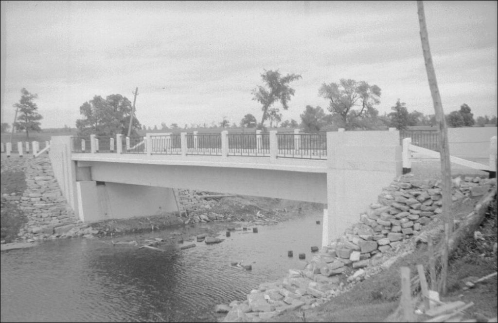 Pont sur la rivière Esturgeon à Saint-Paul, comté de Châteauguay, 1948, Archives nationales à Québec, Fonds Ministère de la Culture et des Communications, (03Q,E6,S7,SS1,D2,P66545), Camille Milot.