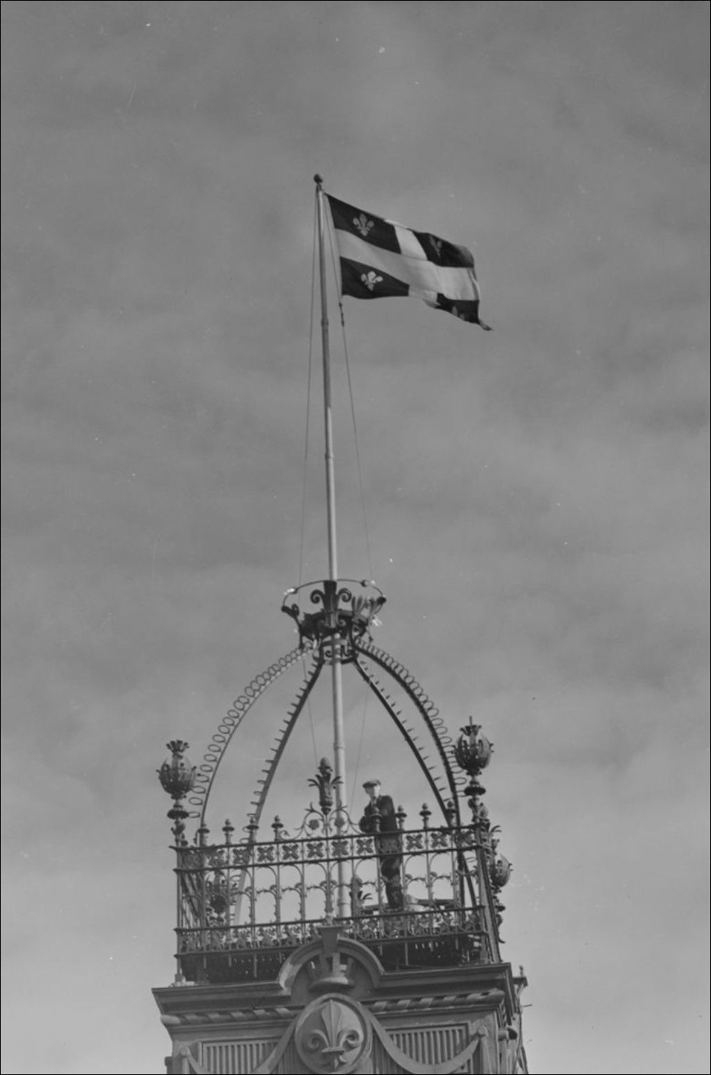 Le drapeau de la province de Québec flottant sur le Parlement. Québec