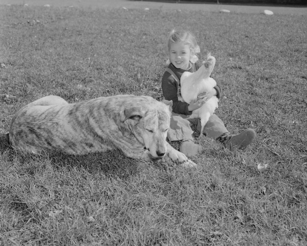 La jeune fille, Lorraine, de Henri Dupont tenant une poule à Saint-Étienne-des-Grès