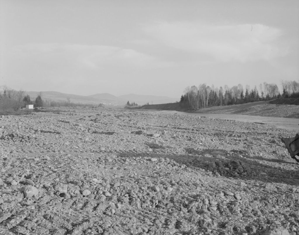 Rivière Etchemin. Travaux de drainage au confluent du ruisseau à l'eau chaude et à la limite des paroisses de Saint-Léon et Saint-Malachie. Saint-Léon-de-Standon, comté de Dorchester, 1948, Archives nationales à Québec, Fonds Ministère de la Culture et des Communications, (03Q,E6,S7,SS1,D2,P67060), J.W. Michaud.