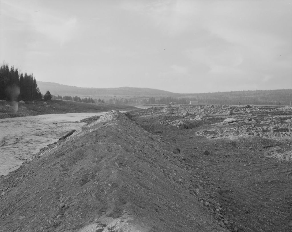 Rivière Etchemin. Travaux de drainage au confluent du ruisseau à l'eau chaude et à la limite des paroisses de Saint-Léon et Saint-Malachie. Saint-Léon-de-Standon, comté de Dorchester, 1948, Archives nationales à Québec, Fonds Ministère de la Culture et des Communications, (03Q,E6,S7,SS1,D2,P67061), J.W. Michaud.