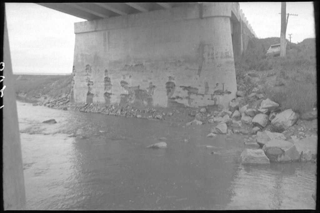 Pont à Saint-Jean-Port-Joli, sur la route Lévis-Rimouski, dommages au béton du pilier