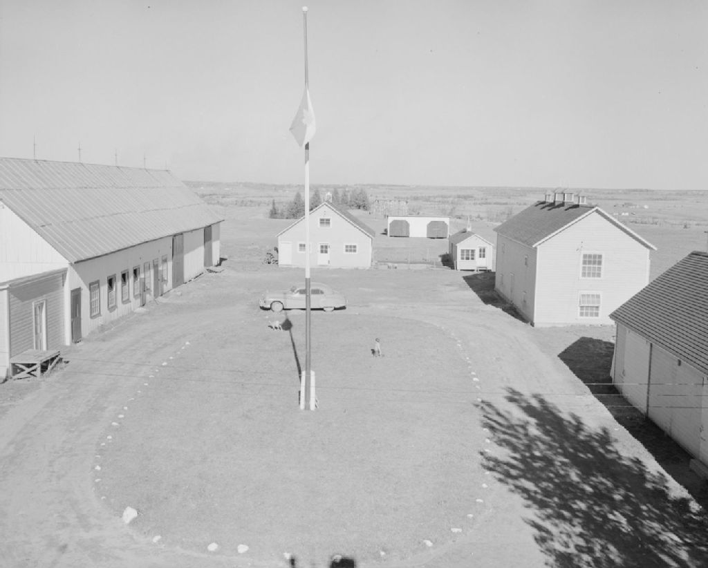 Construction de ferme chez Henri Dupont, lauréat de la médaille d'argent du Mérite agricole 1948, à Saint-Étienne-des-Grès, 1948, Archives nationales à Québec, Fonds Ministère de la Culture et des Communications, (03Q,E6,S7,SS1,D2,P67137), Omer Beaudoin.