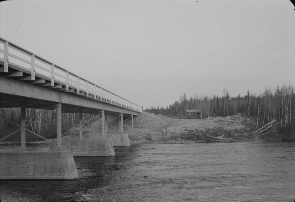 Le pont de Chamouchouane, 1948, Archives nationales à Québec, Fonds Ministère de la Culture et des Communications, (03Q,E6,S7,SS1,D2,P67156), H.-A. Gray.