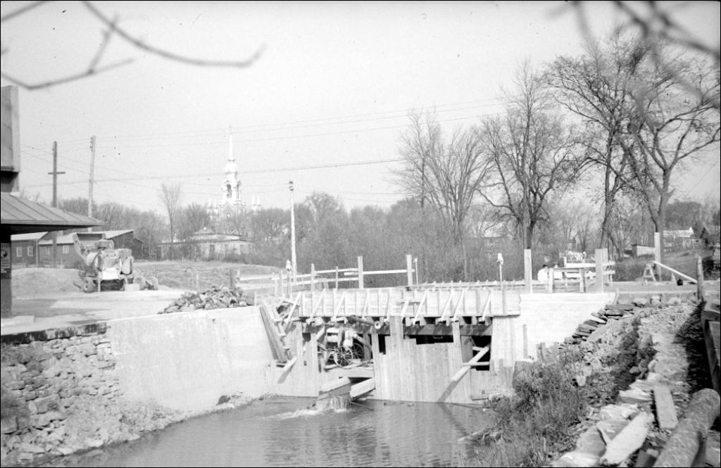 Pont du Moulin Cousineau sur la rivière Belle à Sainte-Scholastique, comté des Deux-Montagnes, 1948, Archives nationales à Québec, Fonds Ministère de la Culture et des Communications, (03Q,E6,S7,SS1,D2,P67216), Camille Milot.