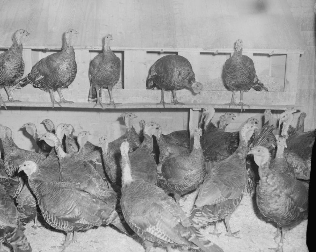 Diverses scènes agricoles sur la ferme de l'Honorable Patrice Tardif, éleveur de dindes à Saint-Méthode, comté de Frontenac, 1948, Archives nationales à Québec, Fonds Ministère de la Culture et des Communications, (03Q,E6,S7,SS1,D2,P67277), Omer Beaudoin.