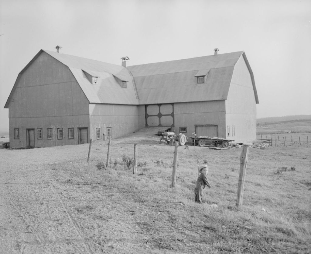 La grange sur la ferme de l'Honorable Patrice Tardif, éleveur de dindes à Saint-Méthode, comté de Frontenac, 1948, Archives nationales à Québec, Fonds Ministère de la Culture et des Communications, (03Q,E6,S7,SS1,D2,P67281), Omer Beaudoin.