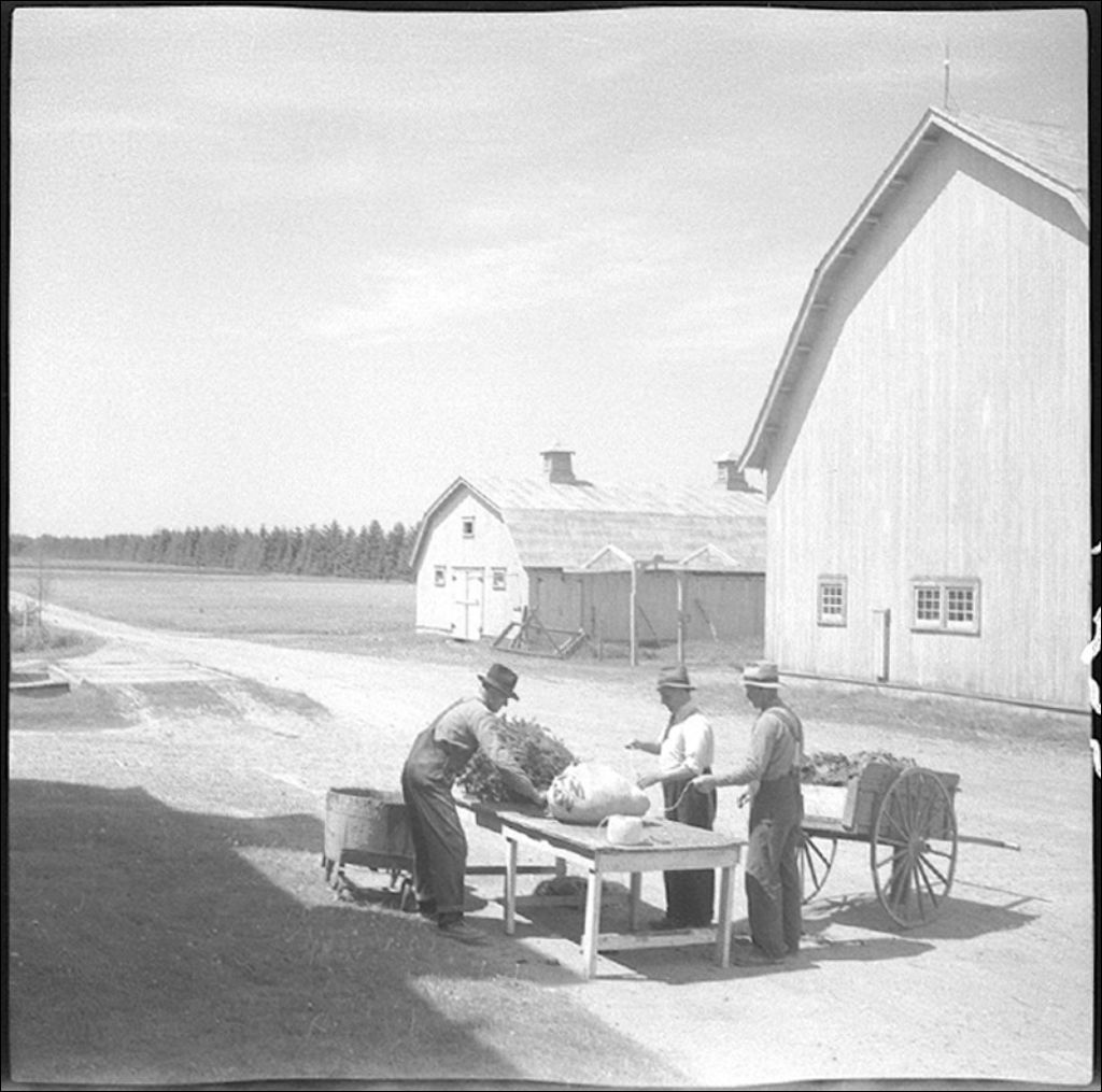 Pépinière de Berthierville: emballage des plants, 1942, Archives nationales à Québec, Fonds Ministère de la Culture et des Communications, (03Q,E6,S7,SS1,D2,P6733), Tancrède Deslauriers.