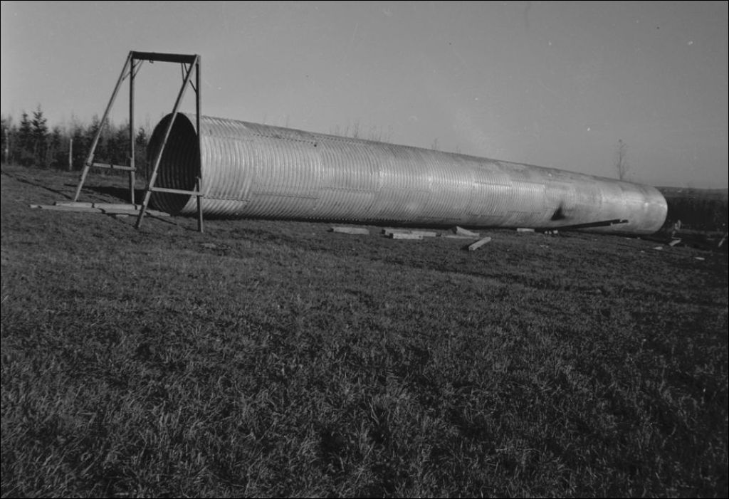 Tuyau Armco multiplatte pour la coulée Claveau, lot 4, rang IV à Saint-François-Xavier-des-Hauteurs, comté de Rimouski, 1948, Archives nationales à Québec, Fonds Ministère de la Culture et des Communications, (03Q,E6,S7,SS1,D2,P67542), Maurice Beaudry.
