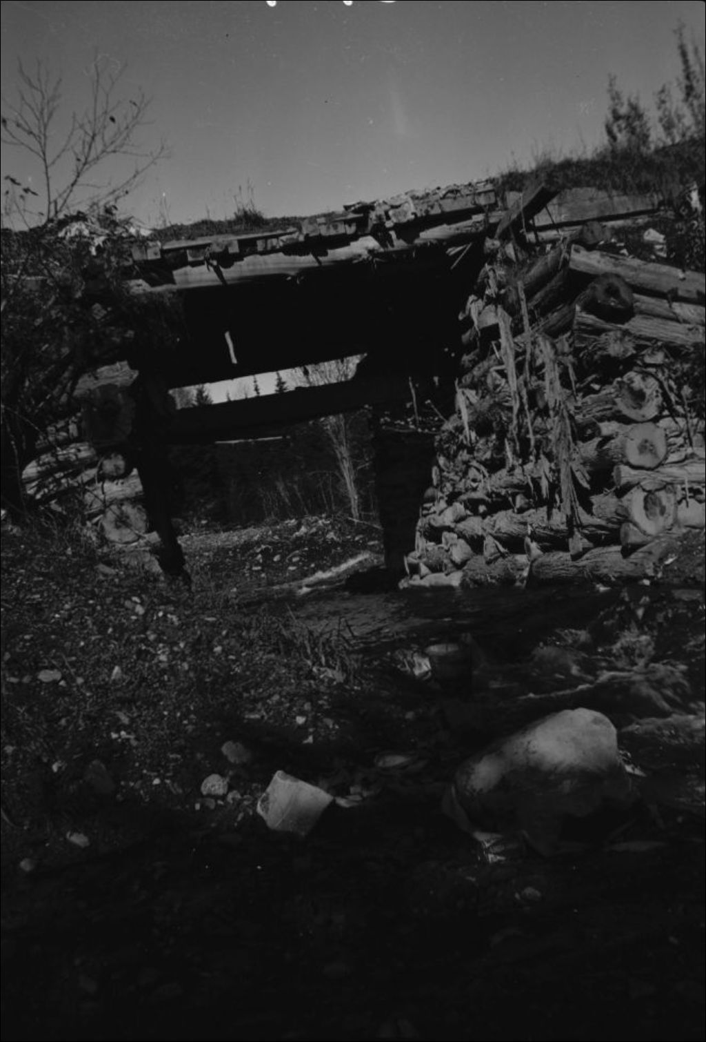 Vieux pont au-dessus du ruisseau Claveau sur le lot 104 du rang IV à Saint-François-Xaviers-des-Hauteurs, comté de Rimouski