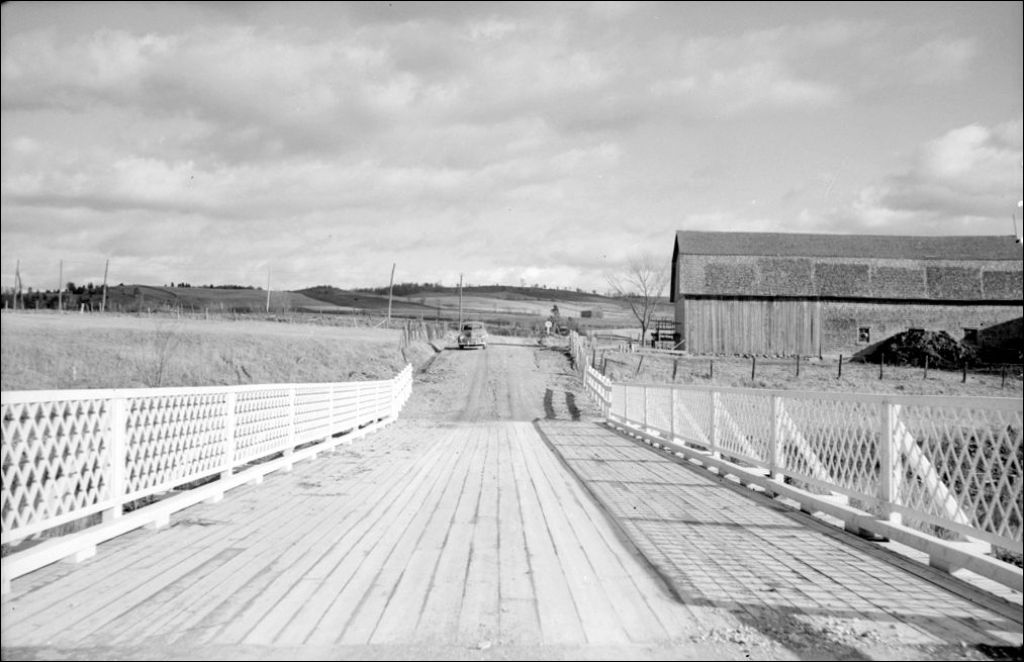 Vue des garde-corps du pont du rang X à Saint-Christophe, comté d'Arthabaska